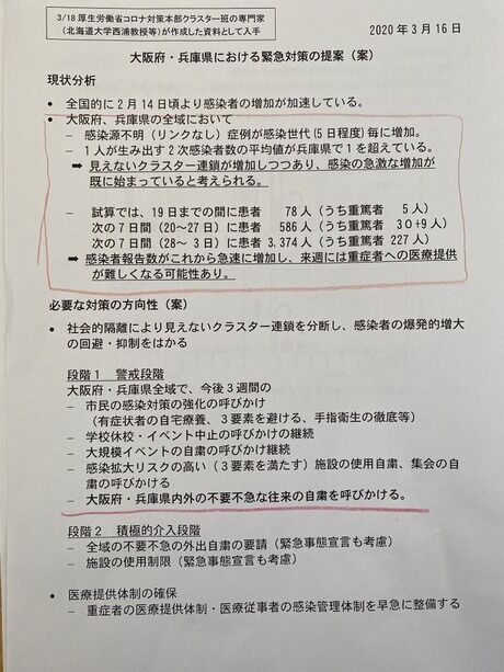 「しかし、僕は公開すべきと思いました。大阪と兵庫はいつ感染の急増(オーバーシュート)が起きてもおかしくない状態ですから」と話した。