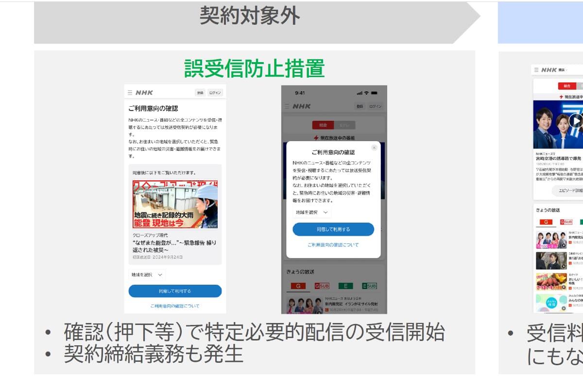 2024年に成立した改正放送法でNHKのネット配信は「必須業務」に格上げされた。10月から放送番組の同時配信や見逃し配信、ニュース記事など番組関連情報の配信を視聴する場合に契約が必須となる。