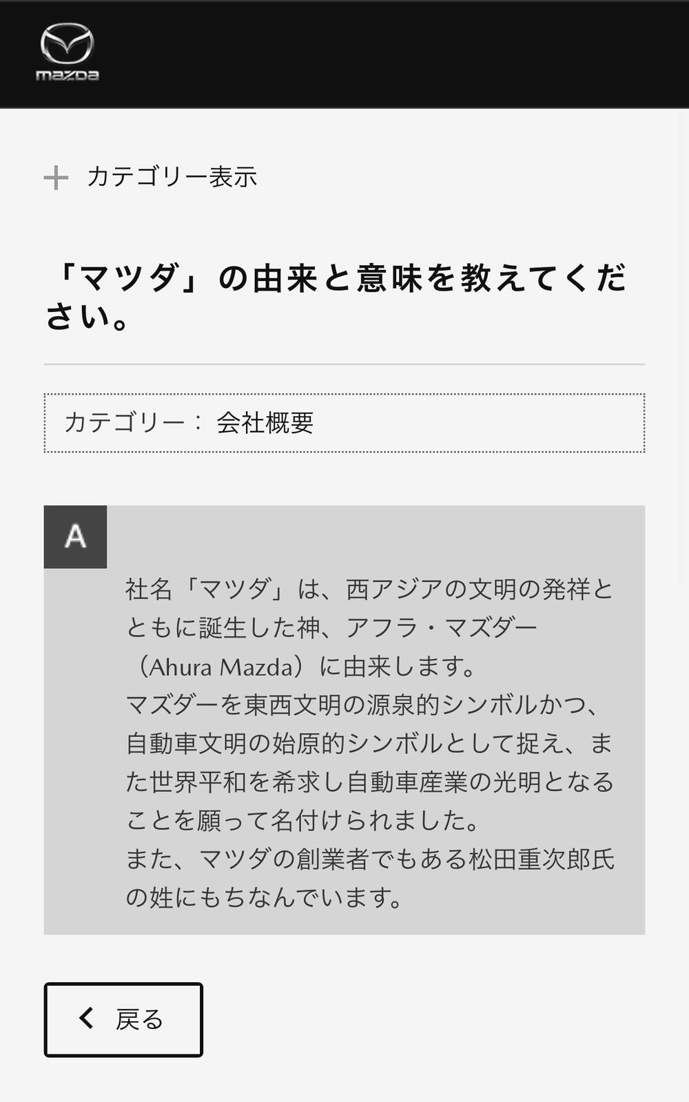 「マツダ」の由来と意味を教えてください。