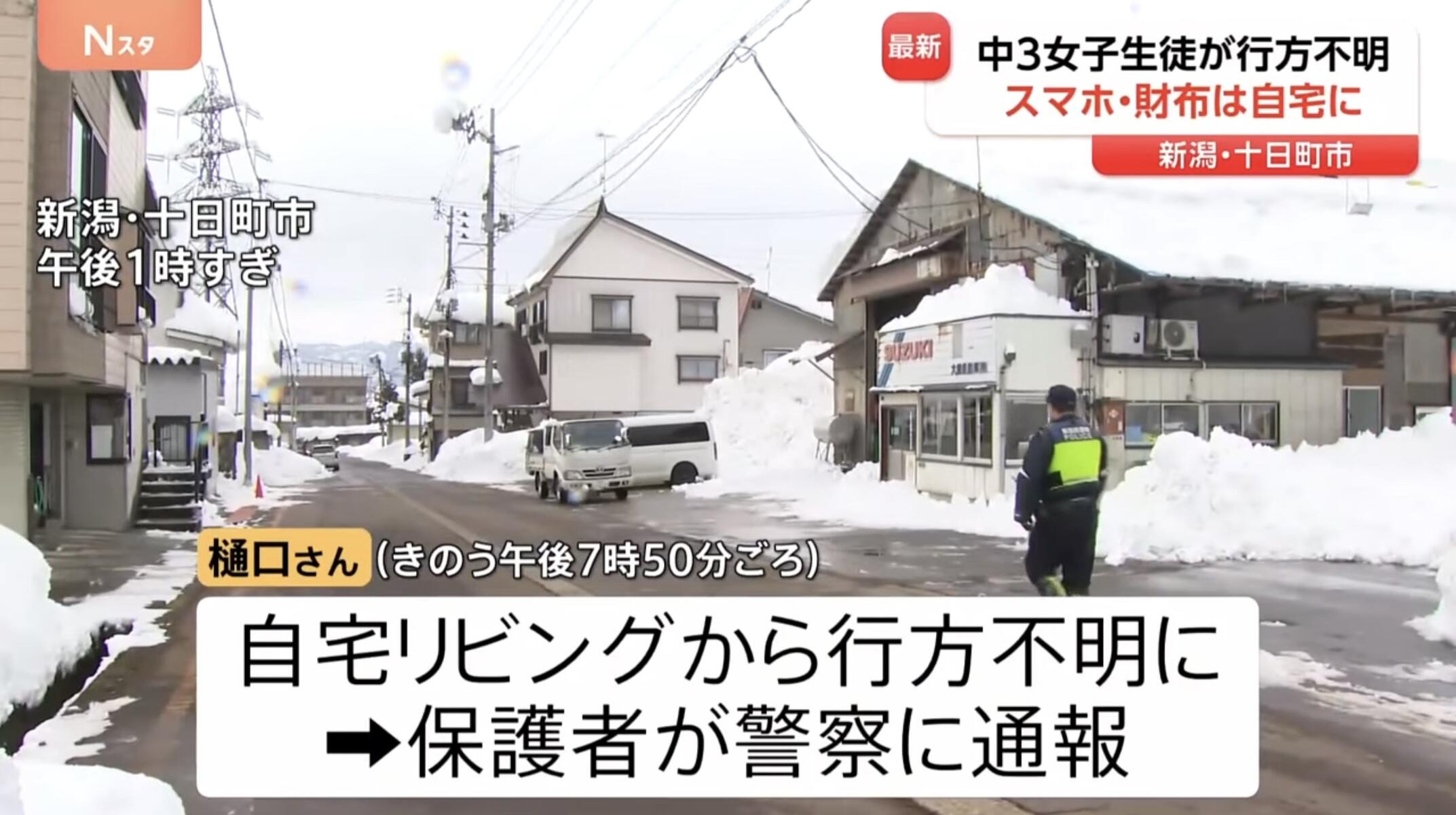 ホーム > 画像ネタ > 【画像】美少女JC、行方不明に 母親「何も言わずに出ていってそれっきり…」 2026/01/28 1: 以下、名無しにかわりましてネギ速がお送りします 2026/01/27(火) 22:27:31.36 ID:qa4rOgEd0 2: 以下、名無しにかわりましてネギ速がお送りします 2026/01/27(火) 22:28:04.62 ID:qa4rOgEd0 4: 以下、名無しにかわりましてネギ速がお送りします 2026/01/27(火) 22:28:53.63 ID:qa4rOgEd0 全て所持品はそのままだったらしい めちゃくちゃ雪とか降ってるから、マジでどういうことなんや 続きを読む - 画像ネタ