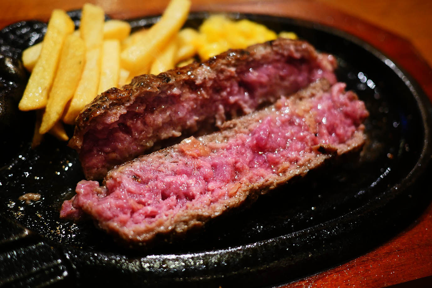 最初は何もつけずにプレーンなまま食べ、二口目に塩をつけて食べれば、どれほど旨味が増幅されたのか理解できるはず。塩をつける前に鉄板にあふれ出た肉汁をハンバーグの断面に染み込ませると、バツグンの美味しさとなる。