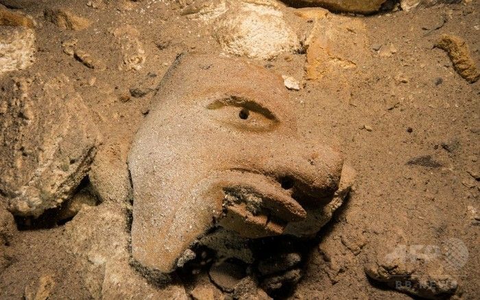 メキシコ南東部キンタナロー州の水中洞窟で見つかったマヤ神話の商業の神を表現しているとみられる仮面