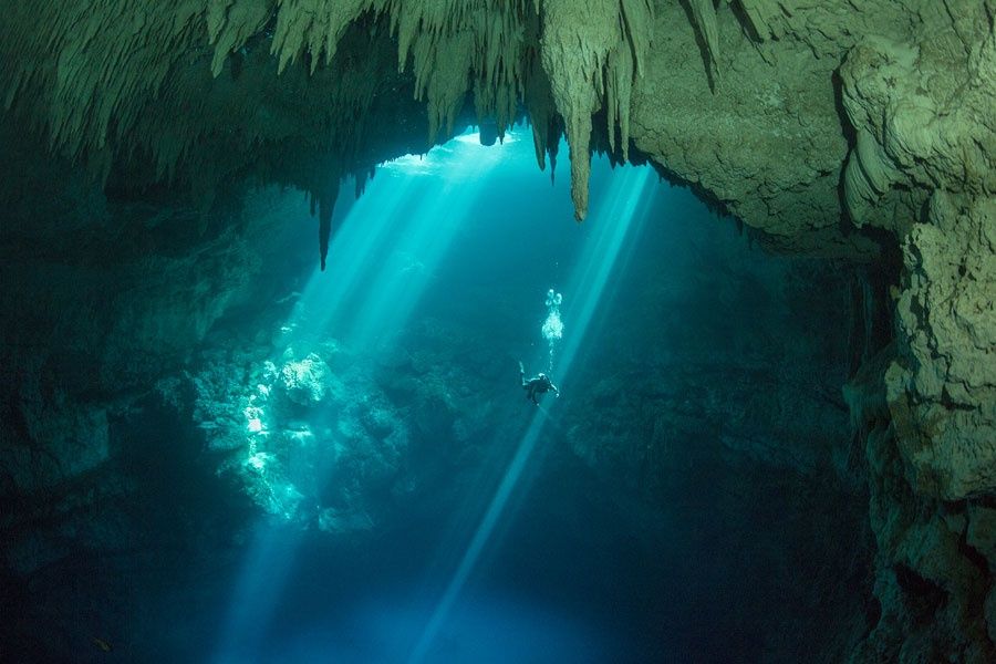 世界最大の水中洞窟にマヤの神殿跡、古代ゾウも