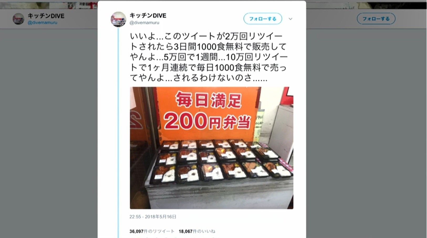 「今1万フォロワー超えたんで、当店のお弁当全品、無料にしようかなって、販売?配ると言った方が正しいのかな、そういうイベントをやろうと思ってます」