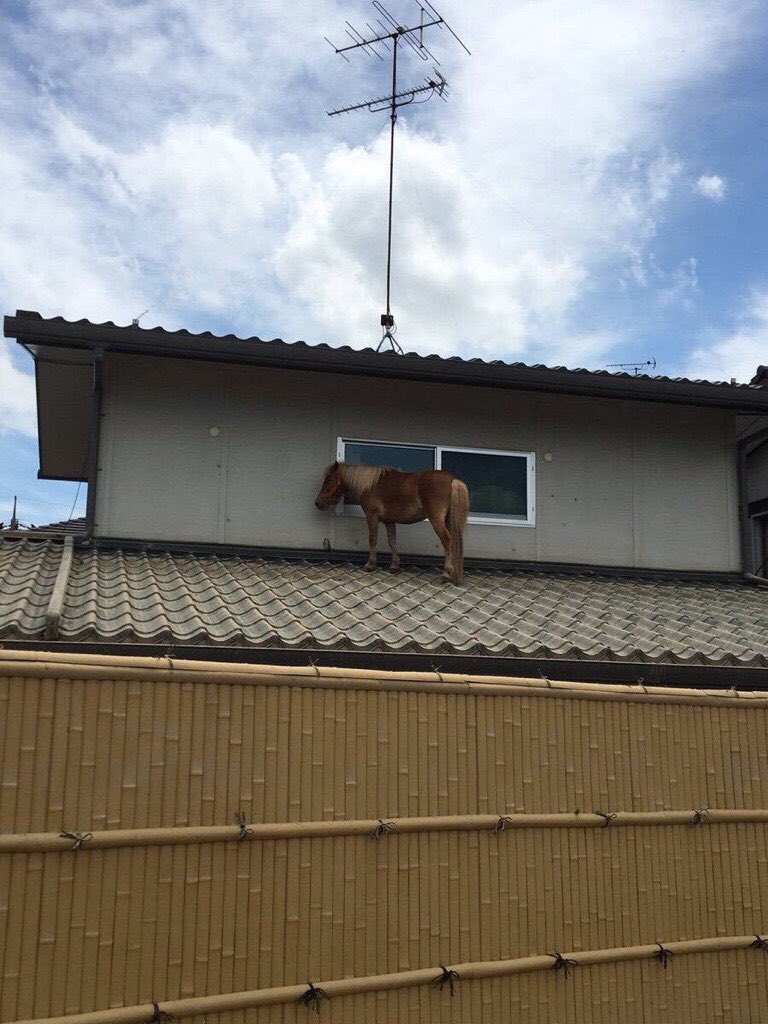 【画像あり】大雨で行方不明になっていたお馬さん、屋根の上で見つかるwwwww