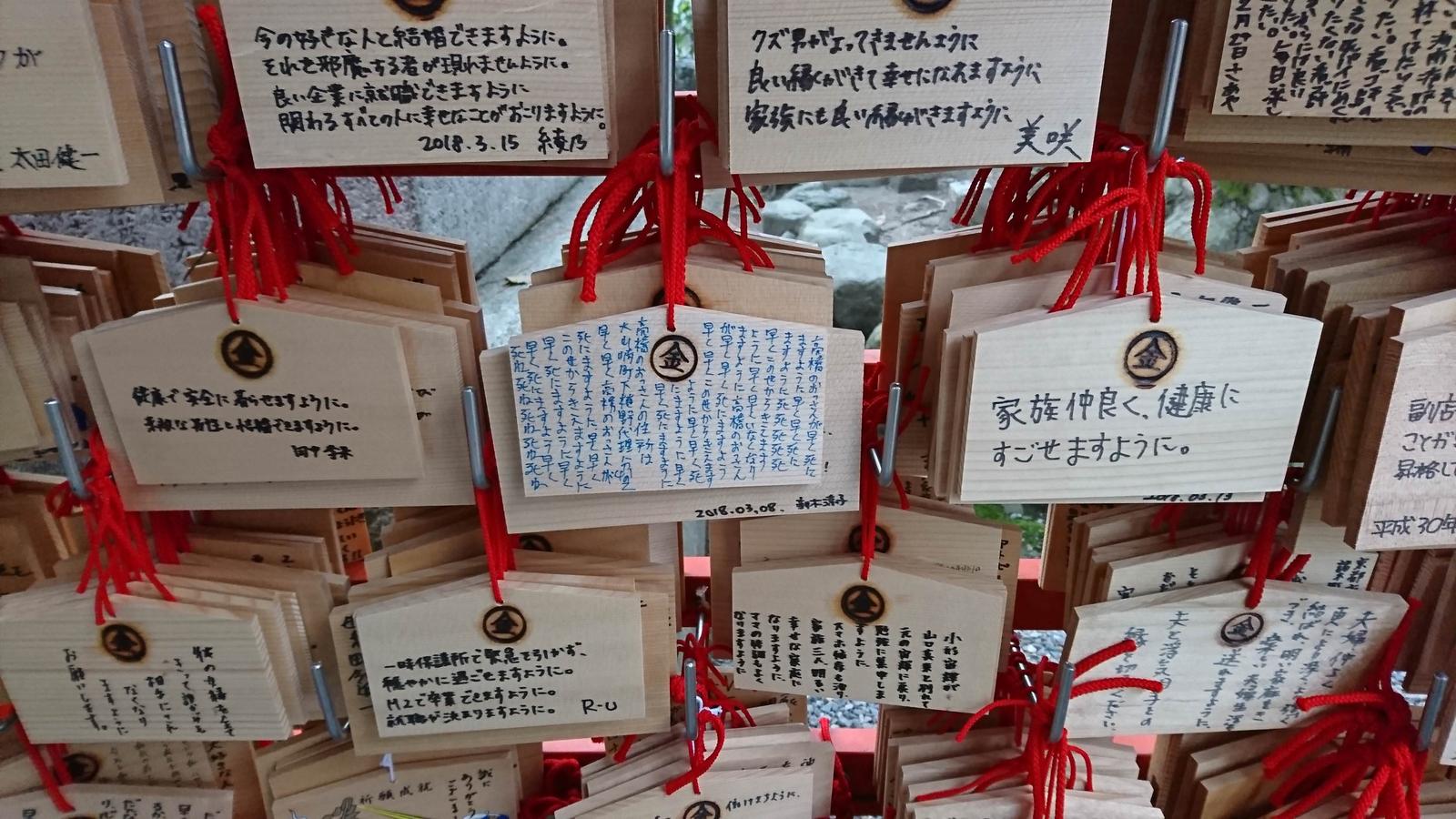 ホーム > 画像ネタ > 【画像あり】神社にかけられてる絵馬に書いてあること見ると結構楽しいよなwwwwwwww 2018/08/03 1: 以下、名無しにかわりましてネギ速がお送りします 2018/08/02(木) 18:42:51.791 ID:Ndf7606x0.net 恨み節が多い 続きを読む - 画像ネタ