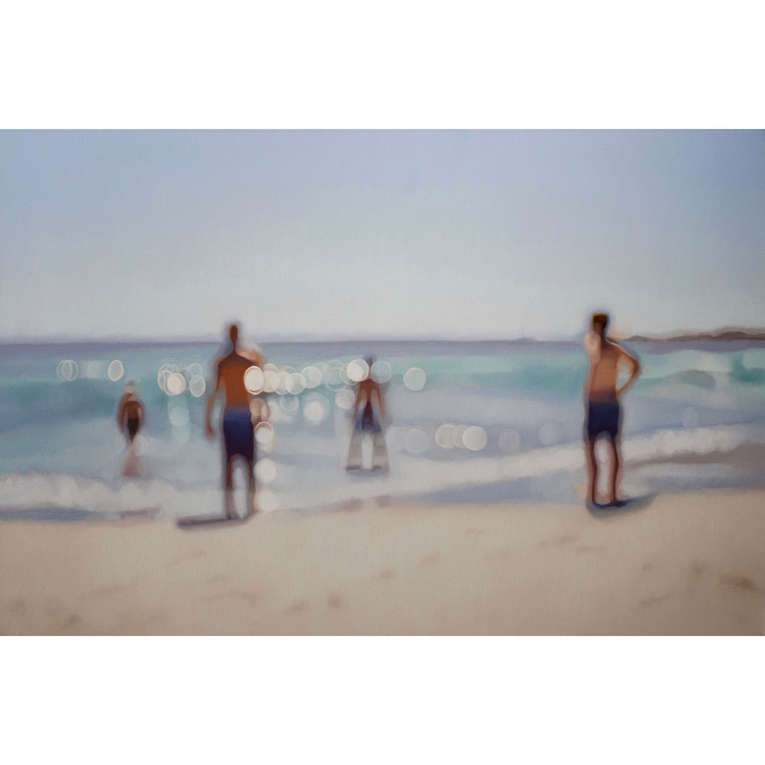 ビーチや街を描いた彼の作品では、敢えて人物や対象物の焦点をぼかし、そのためにより光の反射具合や美しさが際立ってくる。