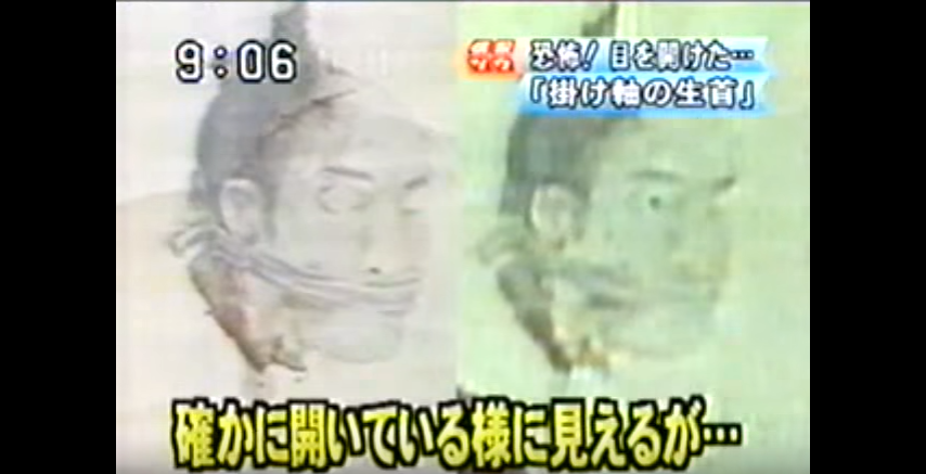 世の心霊ファンの間で有名な放送事故に「目を開く生首の絵」というものがある。