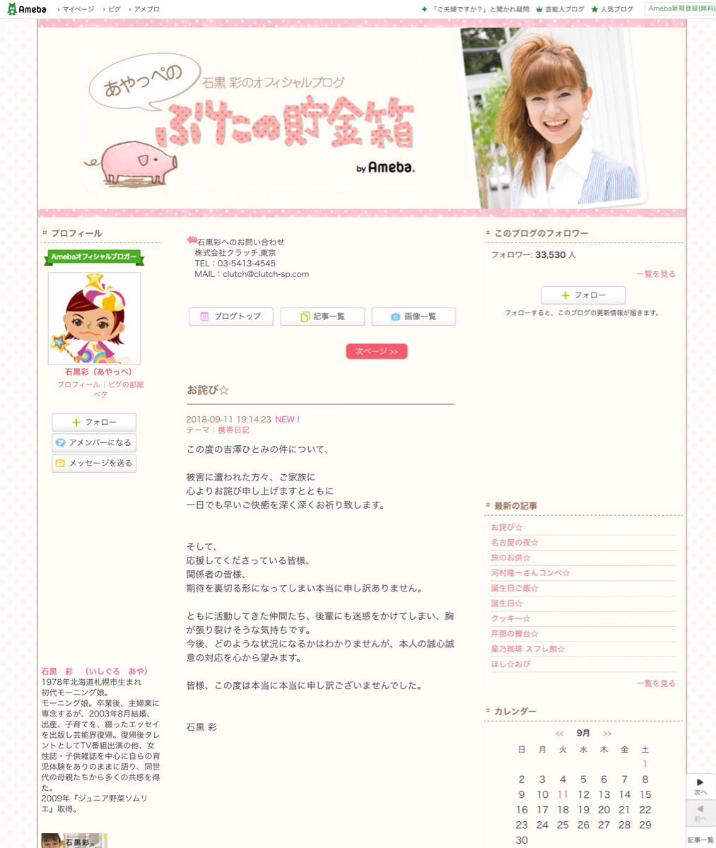 【炎上】元モーニング娘、石黒彩。吉澤ひとみの件についての謝罪ブログが炎上wwwwwwww