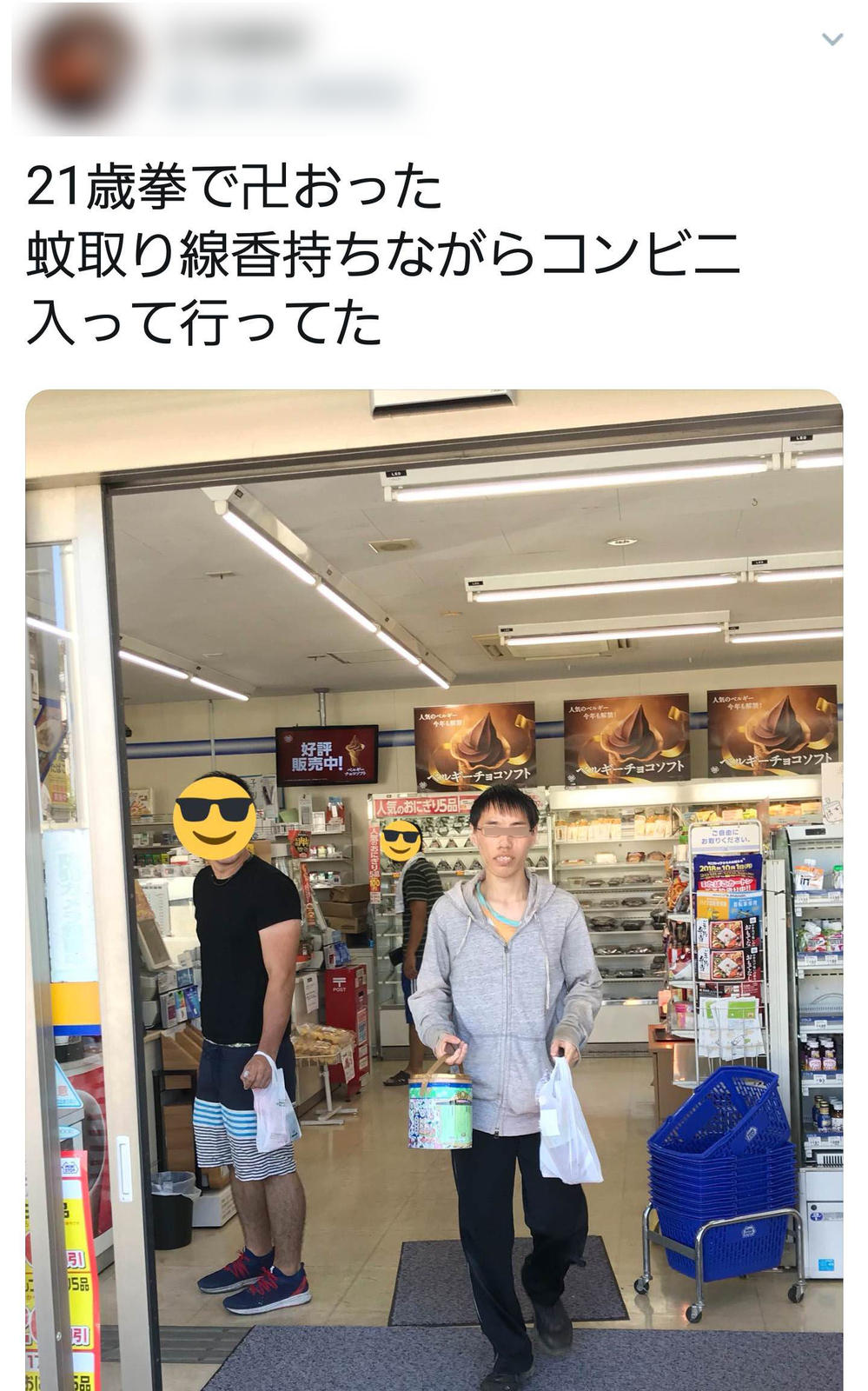 【画像あり】「拳で」の人、コンビニから出てくる所を激写されるwwwwwwww