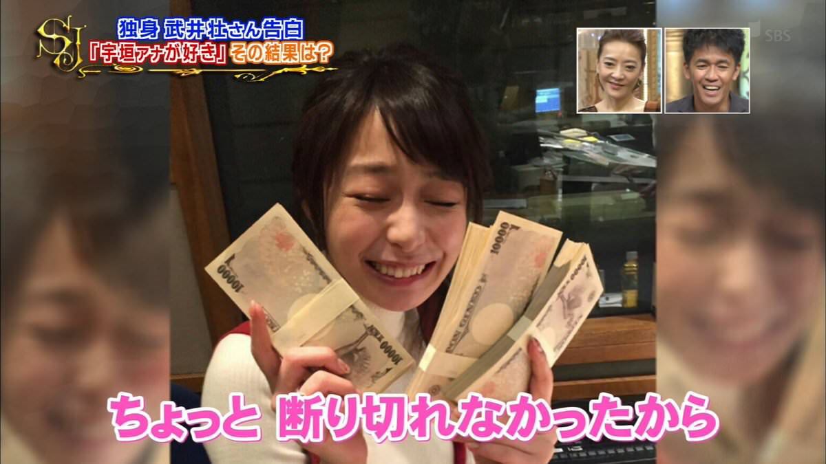 【画像あり】武井壮さん、宇垣アナを札束でゲットしようとしてしまうwwwwwwww