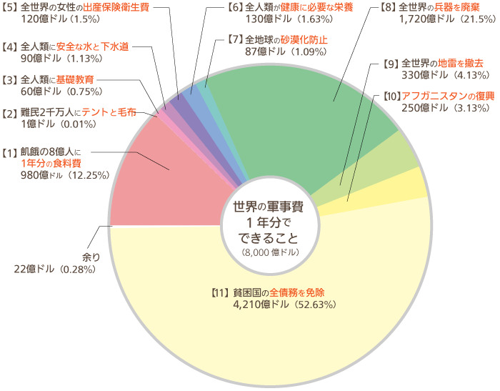 【8】全世界の兵器を廃棄(1,720億ドル)
