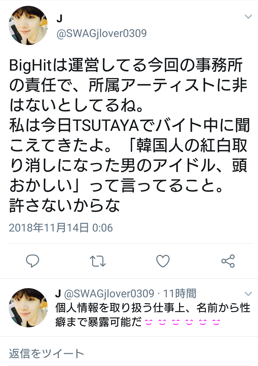 【バカッター】TSUTAYAバイト「BTSの悪口言うやつは個人情報晒すぞ!!!」→ハイ!炎上wwwwwwww