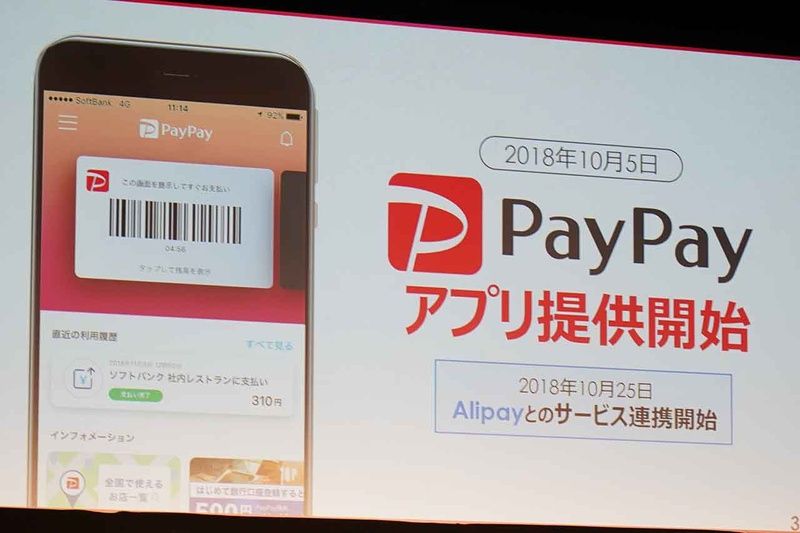 PayPayは、10月5日に提供が開始された、QRコードやバーコードを使用するスマホ決済サービス。事業者側が掲示したQRコードをユーザーがアプリで読み取るか、ユーザーがアプリに表示したバーコード(1次元バーコード、QRコード)を事業者側がレジなどで読み取ることによって決済ができる。