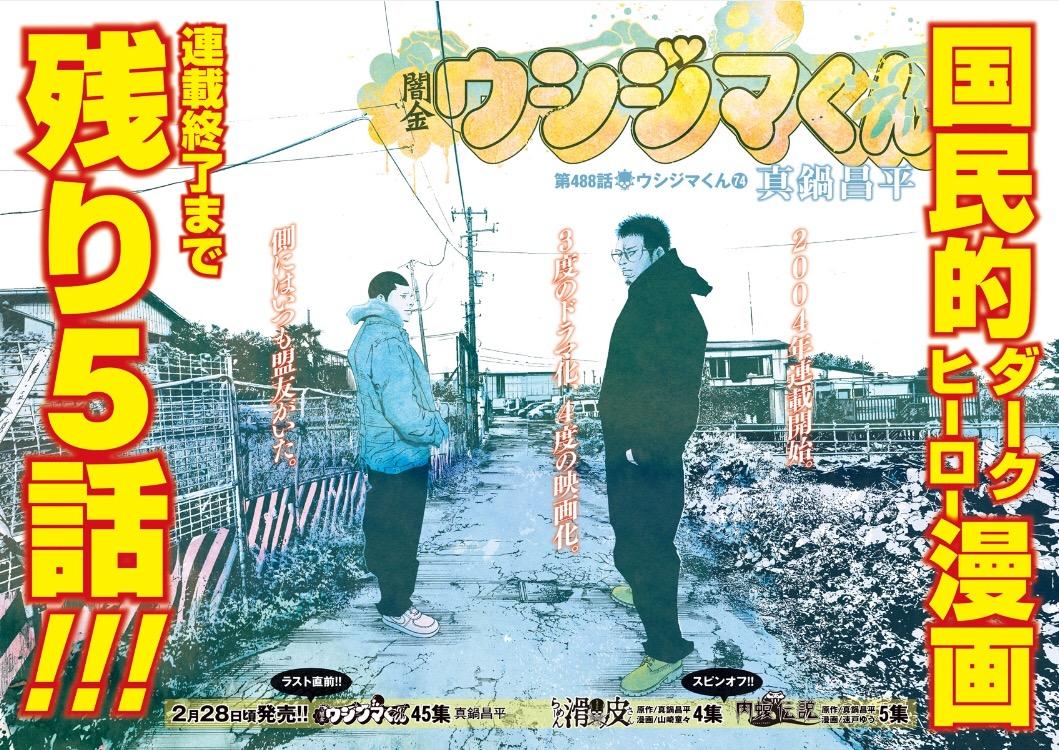 ホーム > 漫画・アニメ・ゲーム > 【速報】闇金ウシジマくん、あと5話で連載終了wwwwwwww 2019/01/30 1: 以下、名無しにかわりましてネギ速がお送りします 2019/01/29(火) 22:09:57.851 ID:Zv/TZUB30NIKU.net 公式闇金ウシジマくん 【作品TOP】 | ビッグコミックBROS.NET(ビッグコミックブロス)|小学館 2: 以下、名無しにかわりましてネギ速がお送りします 2019/01/29(火) 22:10:13.534 ID:kCEVc9VodNIKU.net 国民的…? 続きを読む - 漫画・アニメ・ゲーム