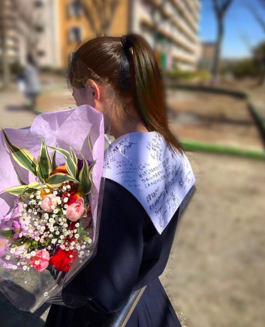 【画像あり】女子中学生、卒業式でセーラー服の襟に寄せ書きwwwwwwww