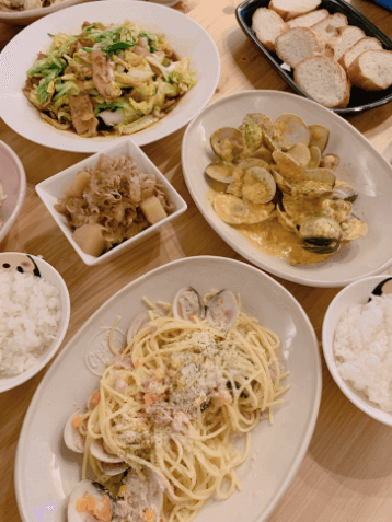 「ハマグリのパスタや回鍋肉~めっちゃ美味しかったぁ」と感想をつづった。