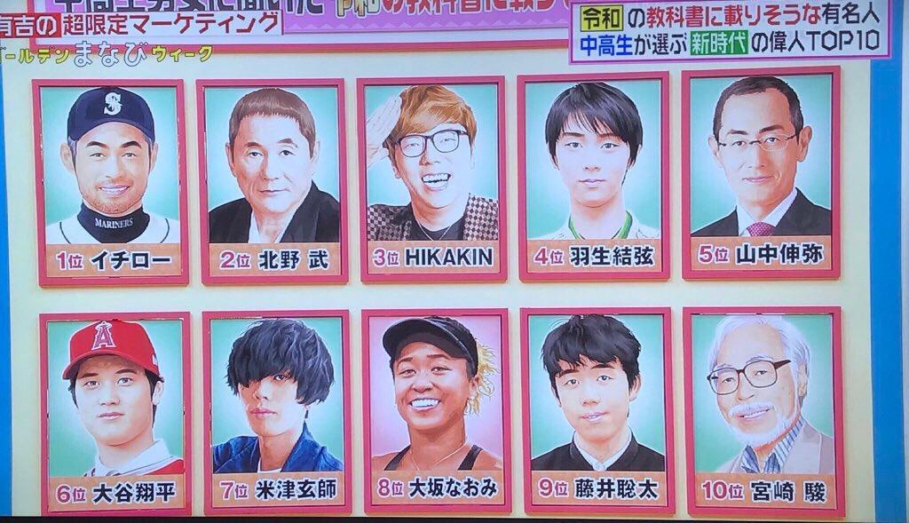 【画像あり】中高生が選んだ「令和の教科書に載りそうな有名人」にとんでもない人物がランクインwwwwwwww