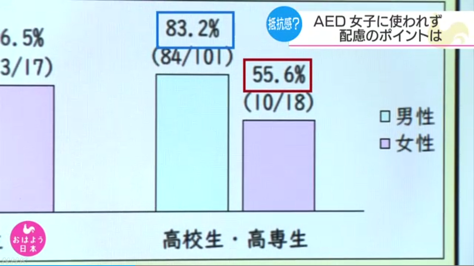 【緊急】 AED、使用率に男女差 女子高生は男子より3割低い 素肌を出すことに抵抗感か?