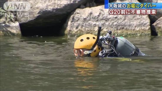 【画像】大阪城のお堀にダイバー、G20控え不審物無いか確認wwwwwww