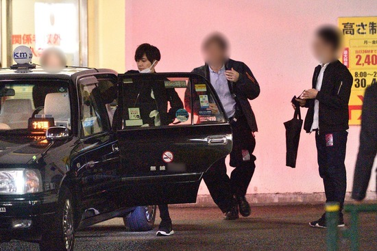 2017年11月、仕事場からタクシーに乗り込む梶