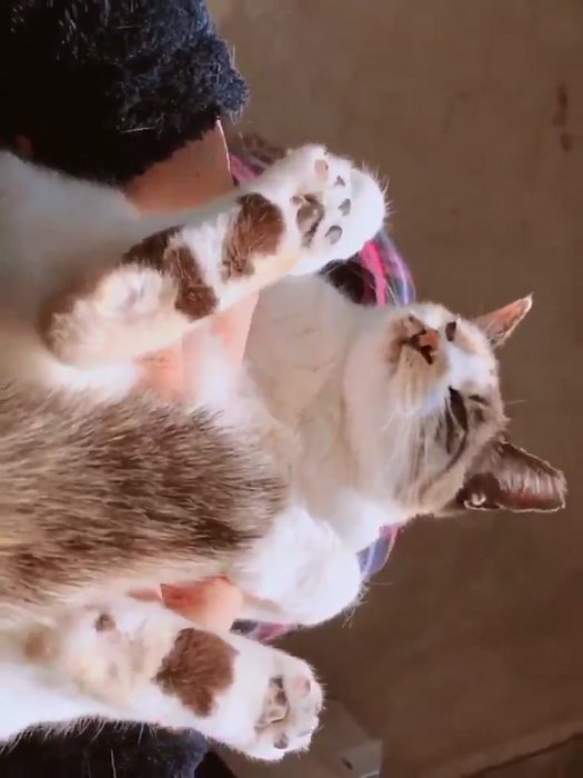 飼い主のぱんこ。(@pancoro3)さんによると、お腹をもんでいるとだんだん体が折りたたまれていくとのこと。なぜなのか? それは癖なのか? 別の動画を確認してみると、折りたたみ状態でムニムニもみもみとかまってもらい、まったりリラックスしています。詳しくはわからないけれど、よりめさん的にはこれでいいらしい。