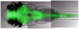 研究グループは、睡眠時の脳の活動を観察するため、脳が透明な生後1〜2週間の幼年期のゼブラフィッシュを実験に使った。脳の神経細胞が活動した指標として、カルシウムの濃度が上がると明るさが増す特別なたんぱく質を、ゼブラフィッシュにあらかじめ入れておいた。