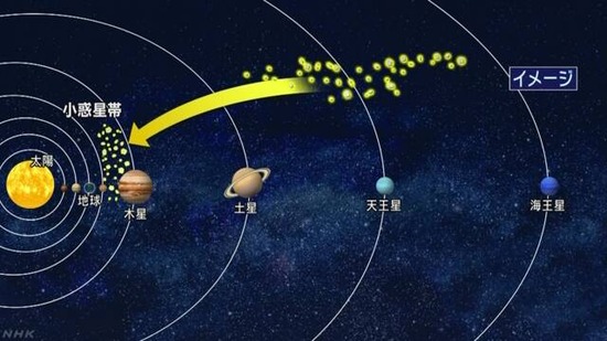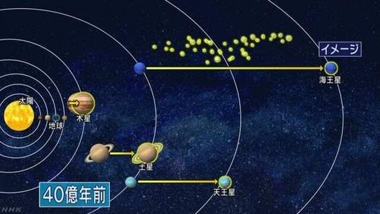太陽系ができる過程では、およそ40億年前に木星よりも外側の惑星はそれぞれの重力が影響し合って太陽から離れる方向に移動し、海王星は地球と太陽の距離の15倍にあたる22億キロ余り、天王星はおよそ7億5000万キロ外側に移動し、逆に小惑星の一部は木星よりも遠くから木星の内側に移動したという説があります。