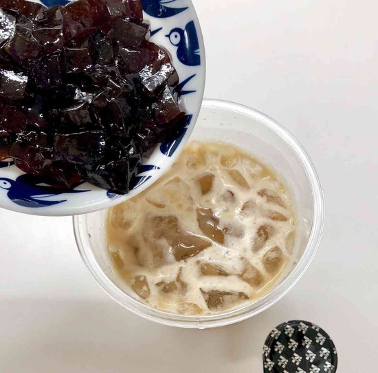 セブンの「アイスカフェラテR」(180円)に、「黒糖わらび」(105円)を入れる方法を紹介したところ、8000を超えるリツイート、1万5000を超えるいいねが寄せられました(8月13日現在)。