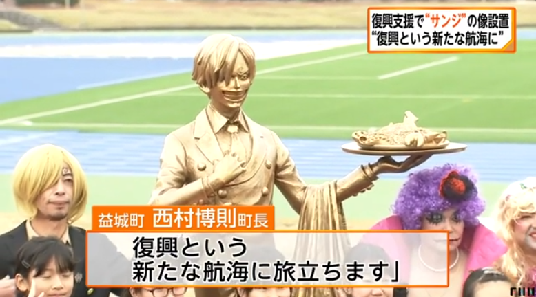 復興支援で“サンジ”の像設置 “復興という新たな航海に”