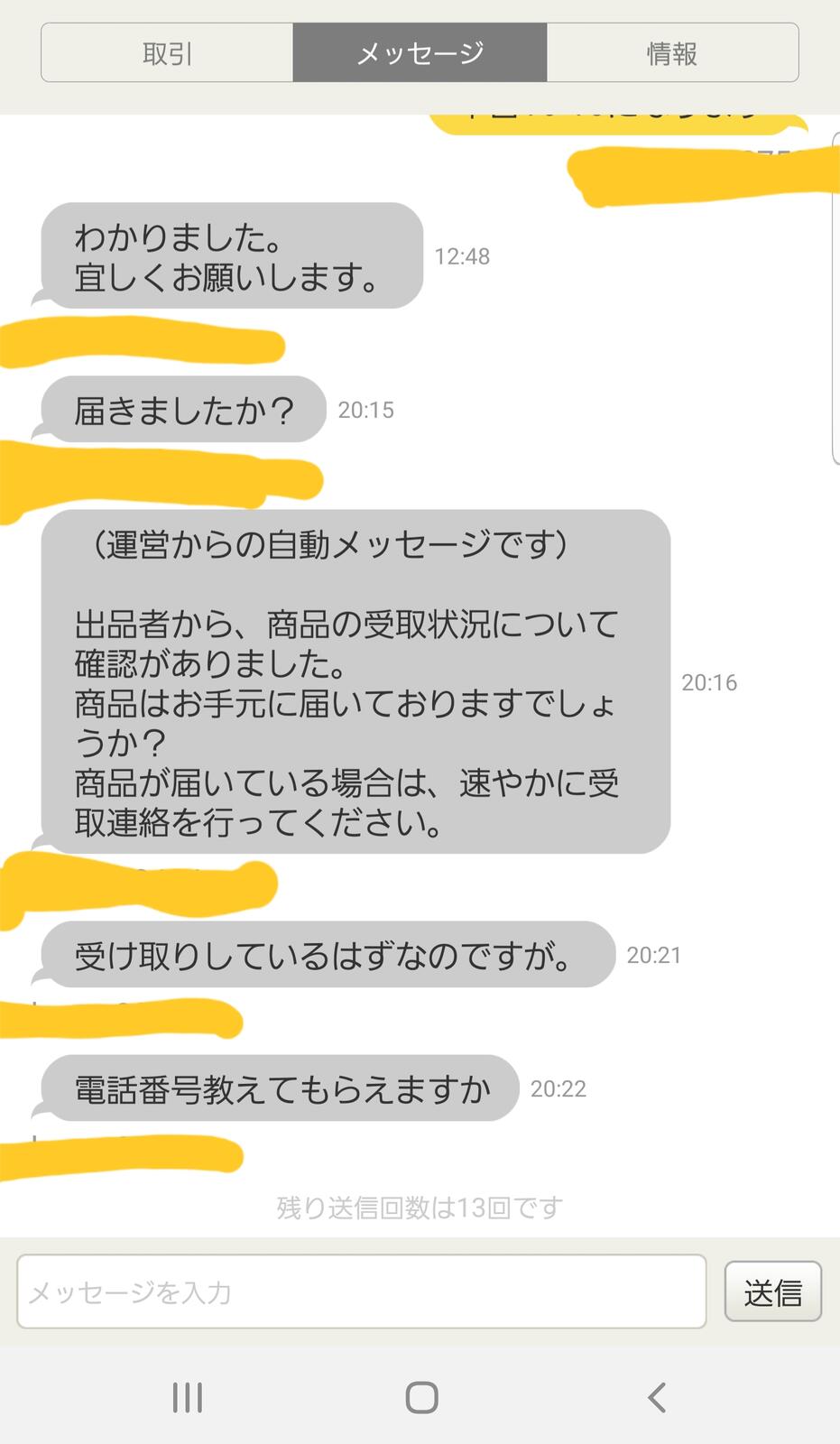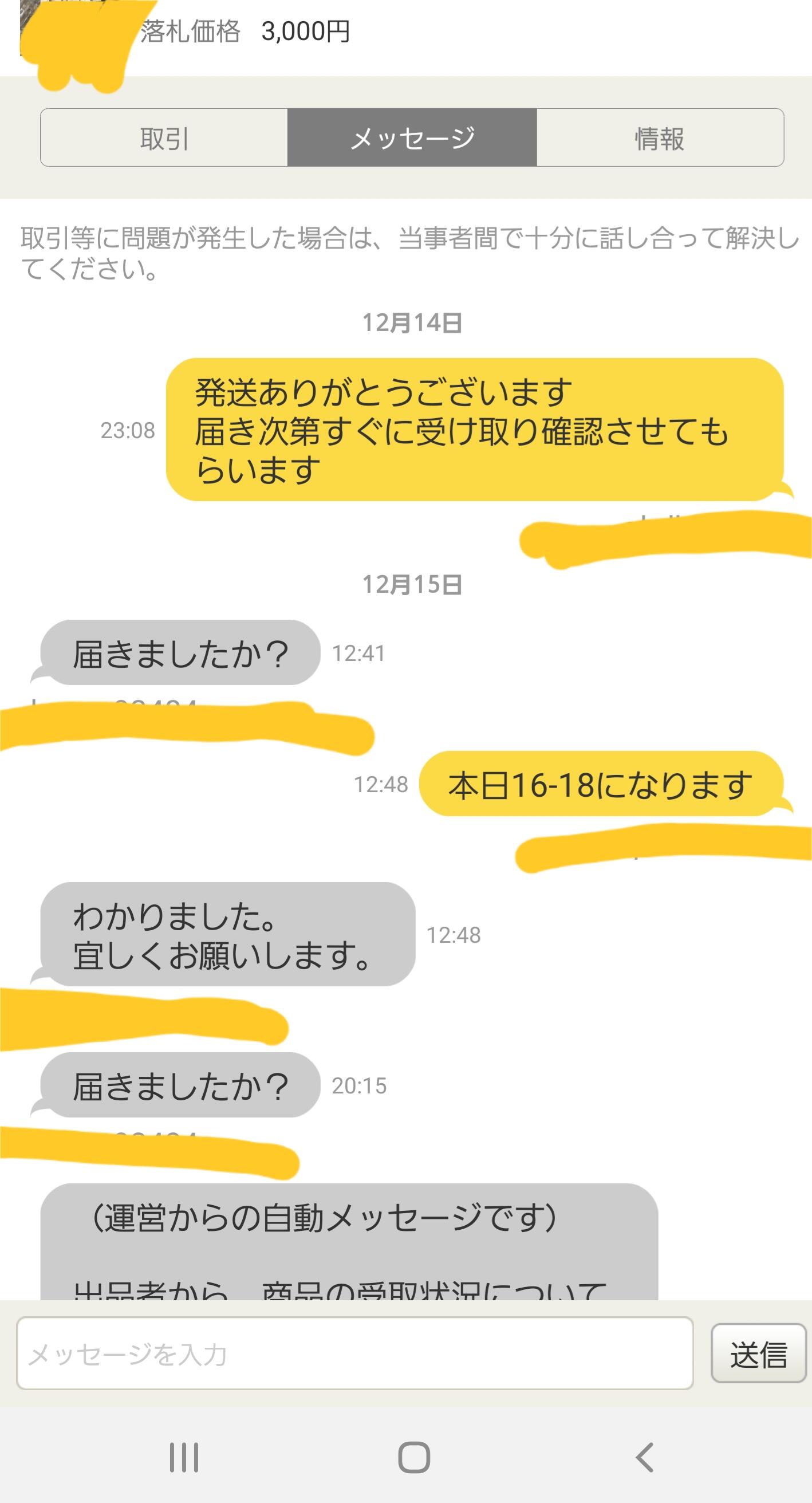 ヤフオク俺「発送ありがとう、届いたらすぐ受け取り確認するね」 相手「届いた?」 相手「ねえとどいたでしょ?」 相手「電話番号教えて」