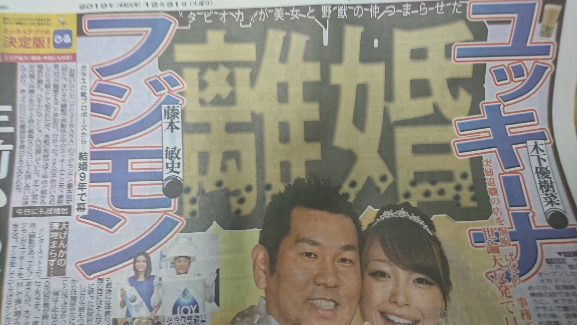 【速報】ユッキーナとフジモン離婚