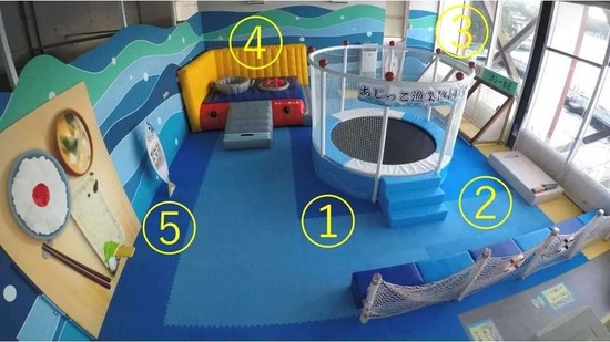 1. トランポリンを使った遊具は漁獲されるところをイメージしています。