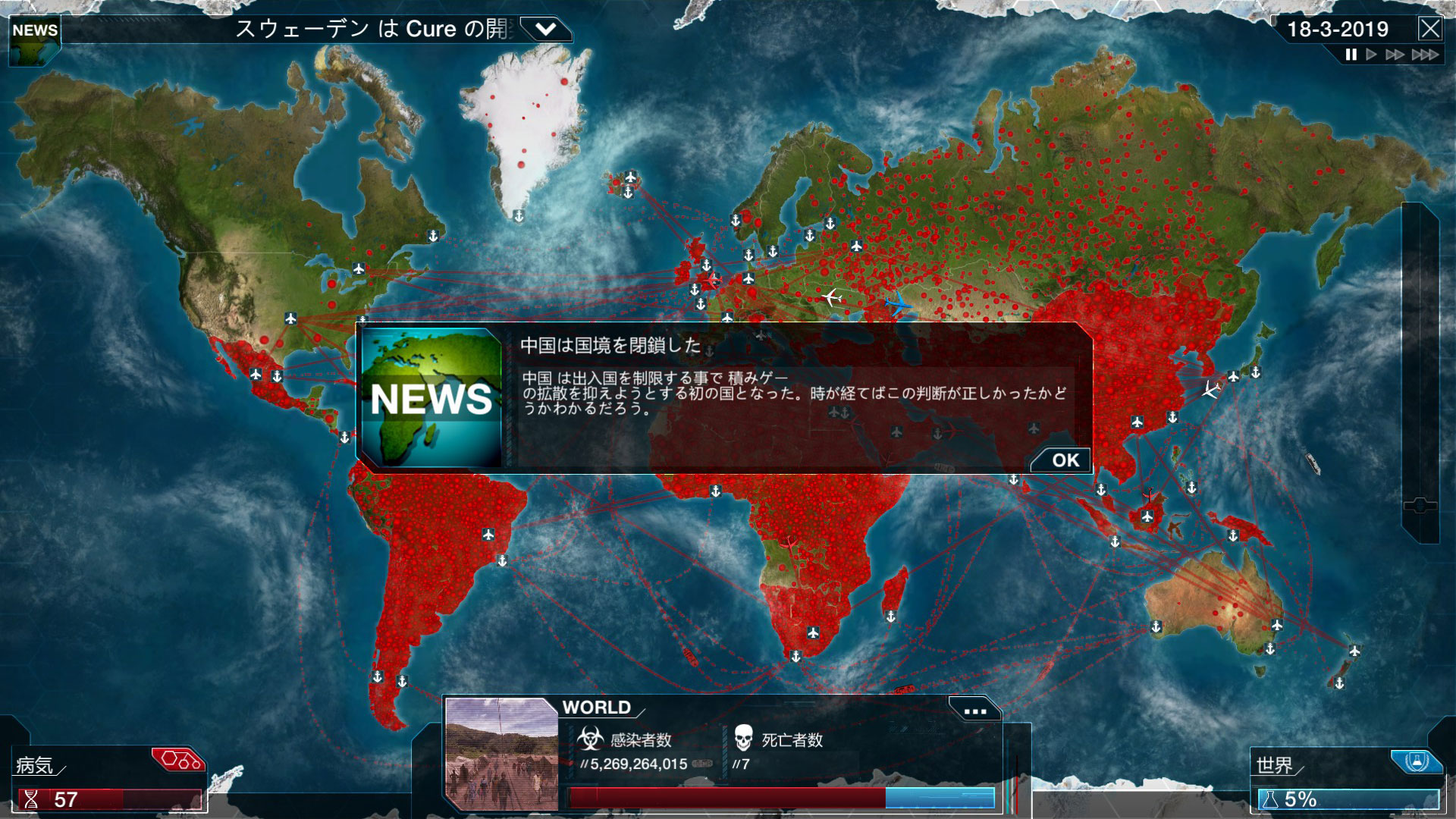意外なところでもその影響が見られている今回の感染拡大ですが、感染拡大が『Plague Inc.』での勝利時のように