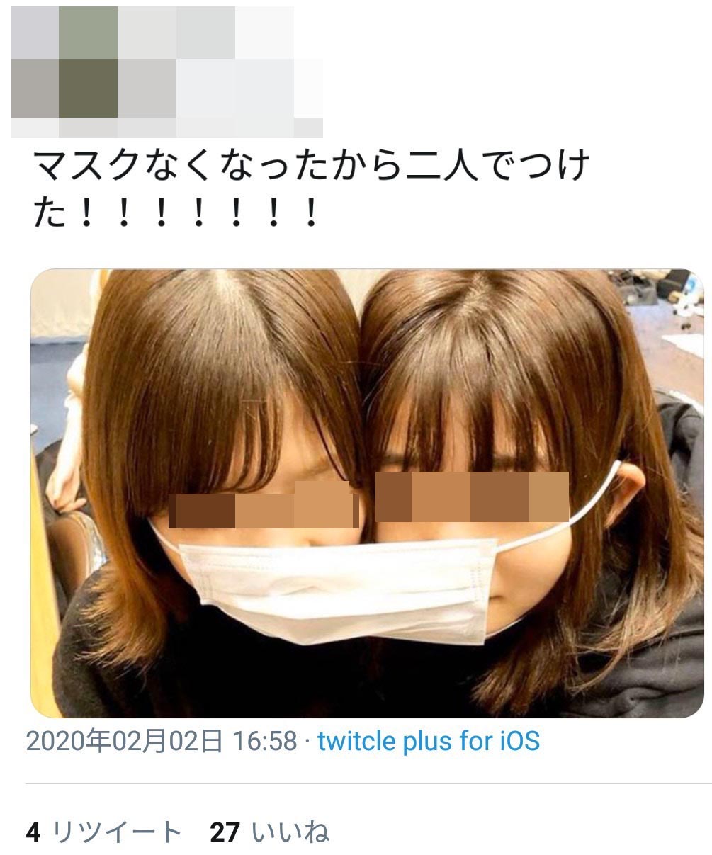 ホーム > 画像ネタ > 【画像あり】女さん、マスクを節約する方法を編み出すwwwwwwww 2020/02/10 1: 以下、名無しにかわりましてネギ速がお送りします 2020/02/09(日) 14:39:09 ID:Z3Lb2btc0.net 2: 以下、名無しにかわりましてネギ速がお送りします 2020/02/09(日) 14:39:37 ID:eJzOkc0k0.net (´・ω・`;) 続きを読む - 画像ネタ