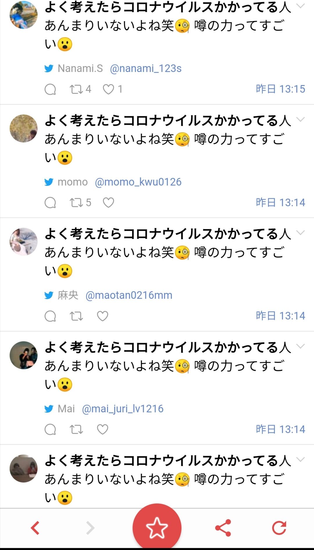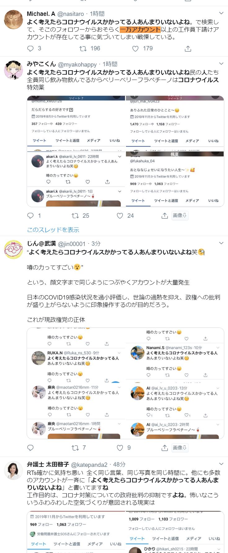 ホーム > 痛いニュース > 【工作?】Twitter民気づく「よく考えたらコロナウイルスかかってる人あんまりいないよね」がトレンドに 2020/02/24 1: マイコプラズマ(オーストラリア) [GB] 2020/02/24(月) 12:49:26.56 ID:l8NUZPRv0● BE:466255231-2BP(2000) ① ② ③ 続きを読む - 痛いニュース