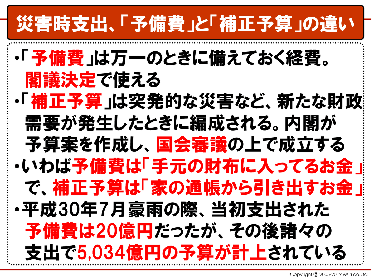 東日本大震災やリーマンショックの時も指摘したけど、最初にでるのは少額の「予備費」で、その後に大規模な補正予算を組む。超基本。