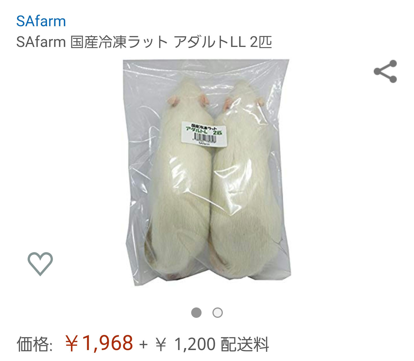 ホーム > 画像ネタ > 【画像あり】アマゾンさん、本物のネズミまで販売するwwwwwwww 2020/03/02 1: 以下、名無しにかわりましてネギ速がお送りします 2020/03/02(月) 04:51:39 ID:xf25waDT0.net 凄すぎだろ… 2: 以下、名無しにかわりましてネギ速がお送りします 2020/03/02(月) 04:52:01 .net >>1 ワニの餌 8: 以下、名無しにかわりましてネギ速がお送りします 2020/03/02(月) 04:53:46 .net いやたっけーな 2匹二千円かよ これを必要とするペット飼ってるやつ金持ちすぎるだろ 続きを読む - 画像ネタ