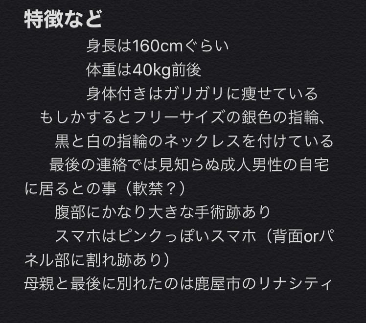 家族も死ぬほど心配しています、どんな些細な情報でも構いませんのでよろしくお願い致します。