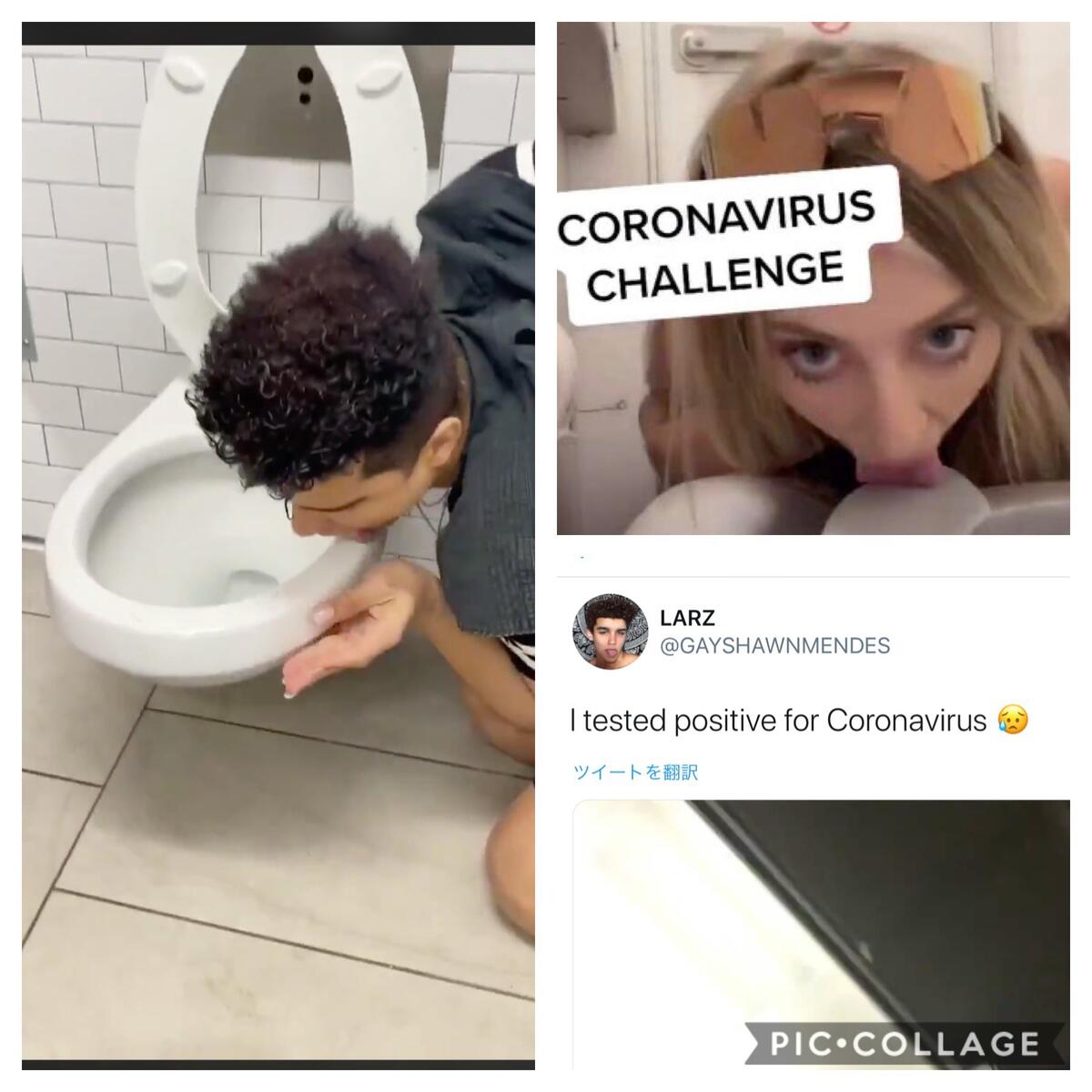 動画には「CORONAVIRUSCHALLENGE(コロナウイルスチャレンジ)」というメッセージが添えられており、女性は便座を舐めた後に両手で∨サインを作っていた。