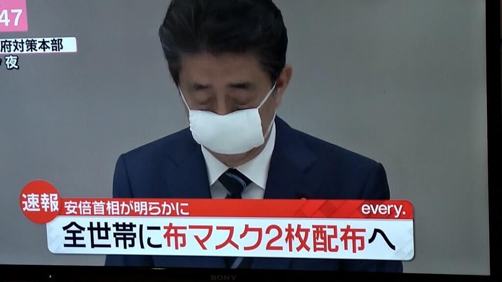 【速報】安部首相、全世帯に布マスク2枚配布を決定!!!!!!!!