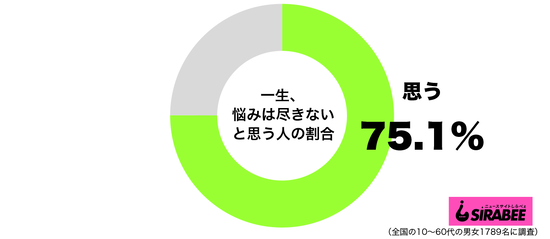 「一生、悩みは尽きないと思う」と答えた人は、全体で75.1%だった。