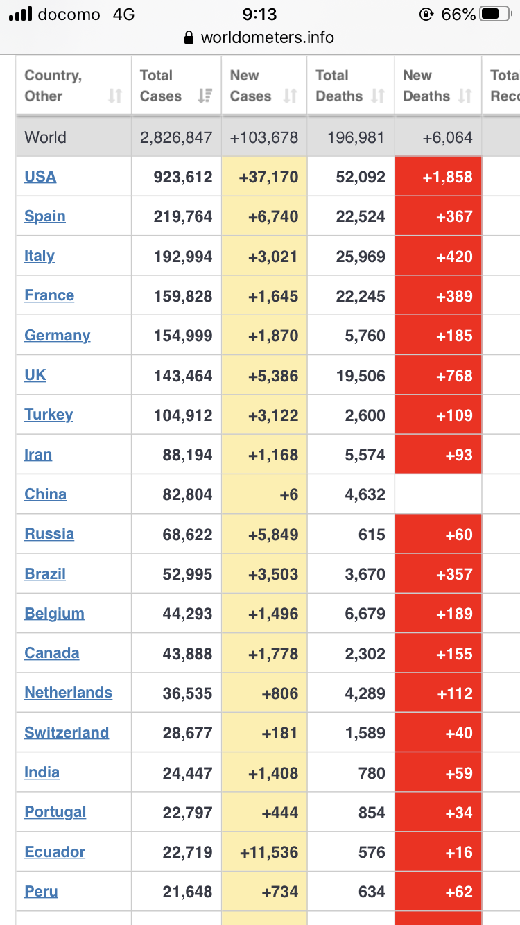 ホーム > 海外ニュース > 【過去最大】アメリカ+37170 2020/04/25 1: 風吹けば名無し 2020/04/25(土) 09:15:13.80 ID:KCzAdUUf0 さっきより増えたぞ ソース https://www.worldometers.info/coronavirus/ 続きを読む - 海外ニュース