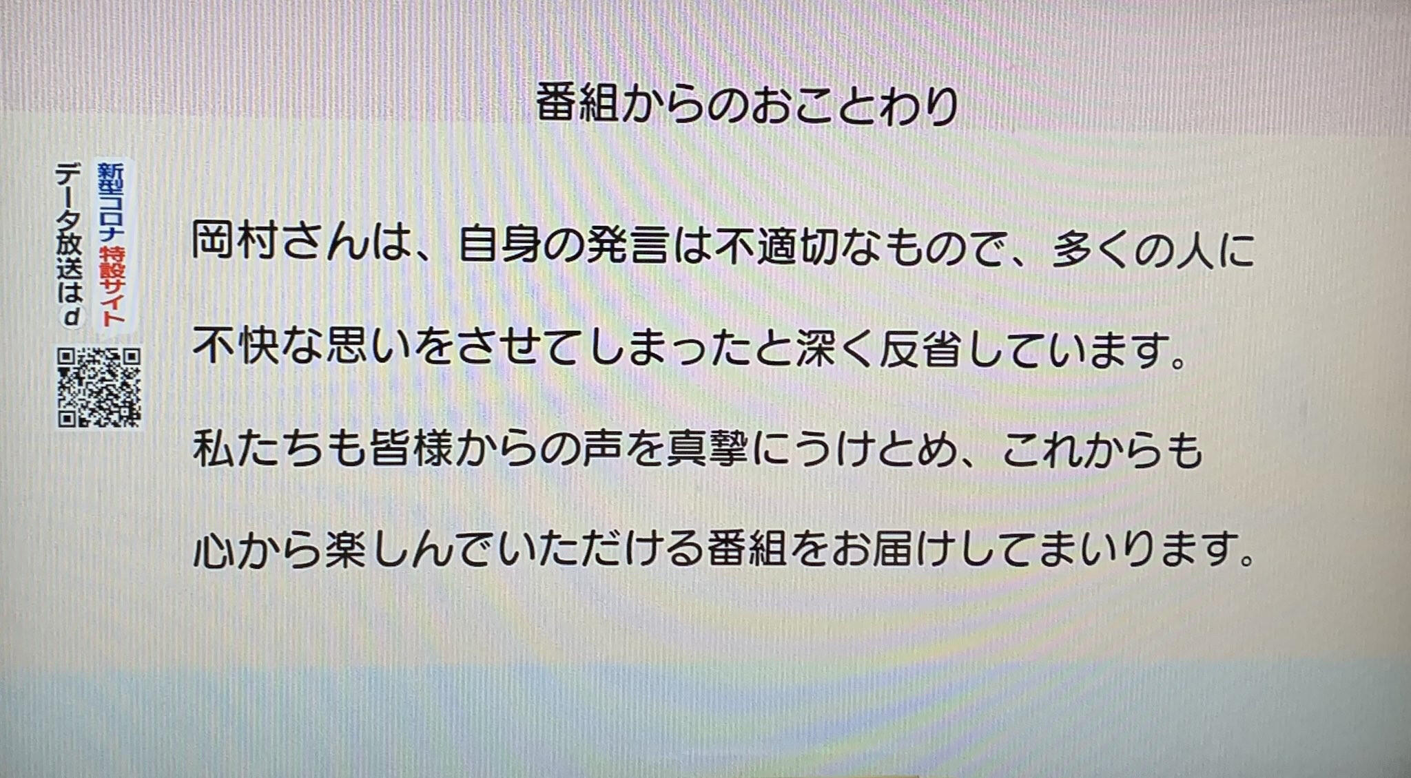 【悲報】岡村隆史、テレビで謝罪せずに女性アナに謝罪文を読ませるwwwww