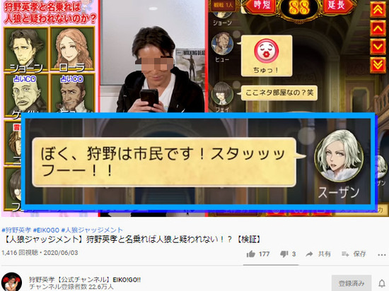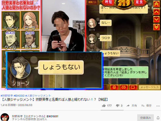 【画像】狩野英孝さん、人狼ジャッジメントで荒らしをして炎上してしまうwww
