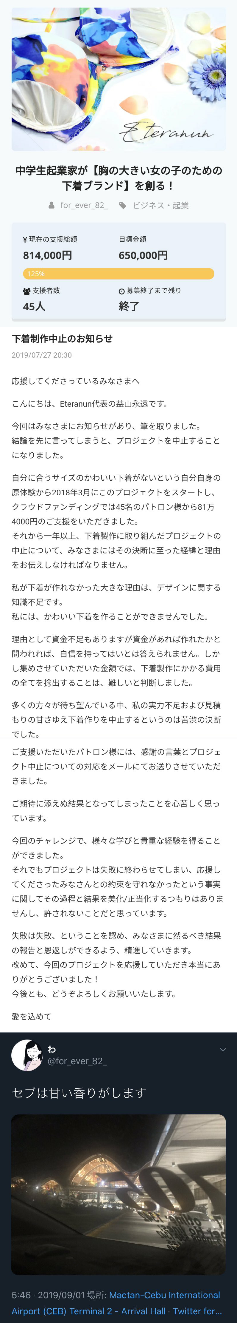 【クズすぎ…】中学生起業家(自称)「女の子のために可愛い下着を作りたい!!」←80万円以上集まった結果wwwwwwww
