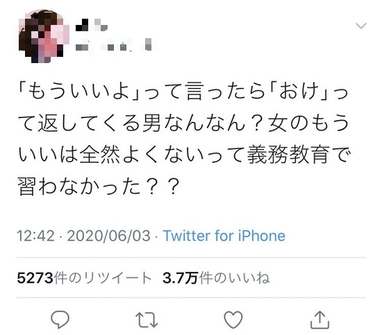 【画像】女さん「女の「もういい」は全然よくないって義務教育で習わなかった?」→結果www