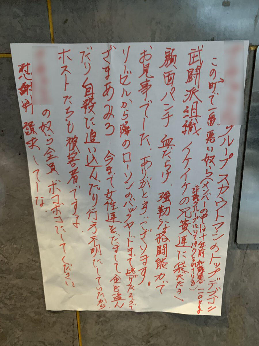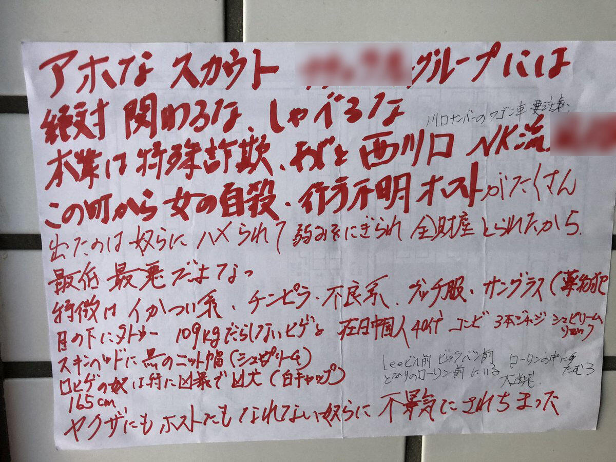 ホーム > 画像ネタ > 【画像あり】歌舞伎町(?)のこの張り紙怖すぎだろ・・・・・・・・ 2020/06/10 1: 以下、名無しにかわりましてネギ速がお送りします 2020/06/10(水) 00:56:19 ID:q12TsJHYa.net 行方不明って・・・ 2: 以下、名無しにかわりましてネギ速がお送りします 2020/06/10(水) 00:57:47 ID:vx3YVDUF0.net デブゴンが気になる 3: 以下、名無しにかわりましてネギ速がお送りします 2020/06/10(水) 00:57:55 ID:Ca6jrXUE0.net こわっ 続きを読む - 画像ネタ