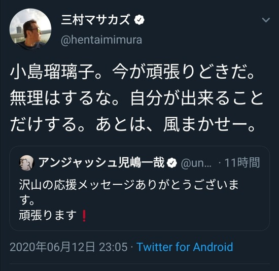 【画像】さまぁ〜ず三村さん、アンジャッシュ児島にクソみたいなリプライを送り炎上してしまうwww