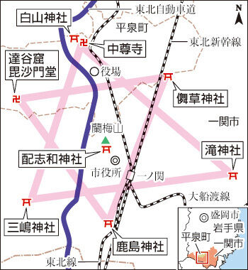 新型コロナウイルスの感染者が、全国で唯一確認されていない岩手県。その理由を巡り、南の玄関口の一関地方でまことしやかなうわさが広がる。「世界遺産・中尊寺周辺にある『六芒星(ろくぼうせい)』の結界=?=がいにしえより地域を守っている」。陰陽師(おんみょうじ)安倍晴明が活躍した平安時代にさかのぼるという六芒星の謎を探った。(一関支局・金野正之)